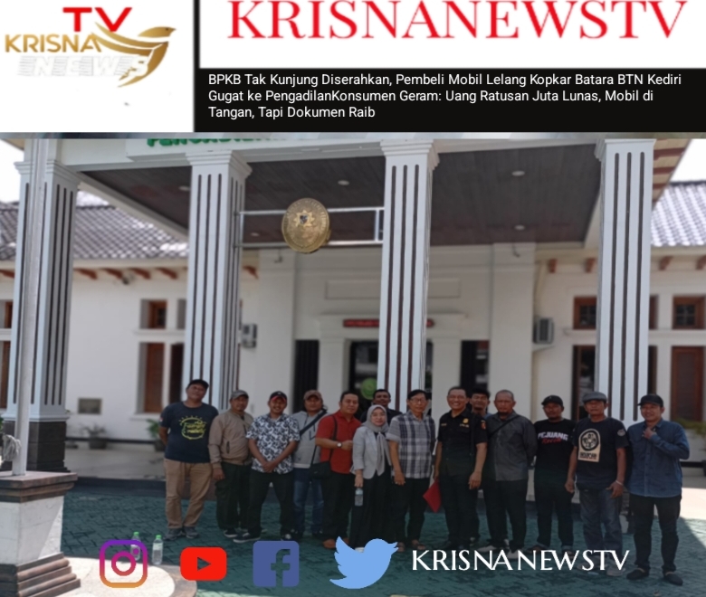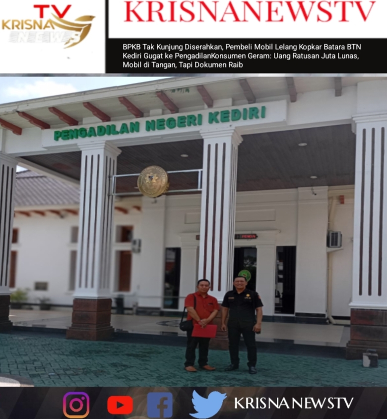 Kediri, Krisnanewstv.com — Aroma dugaan penyimpangan dalam penjualan mobil lelang Koperasi Karyawan Bank Tabungan Negara (Kopkar Batara BTN) Kediri makin tajam tercium. Seorang pembeli bernama Lambang Aji Mustofa, SE, warga Banjarjejo, Kecamatan Ngadiluwih, Kabupaten Kediri, terpaksa menempuh jalur hukum setelah dua unit mobil yang dibelinya secara tunai tak kunjung dilengkapi BPKB, meski pembayaran telah lunas sejak berbulan-bulan lalu.