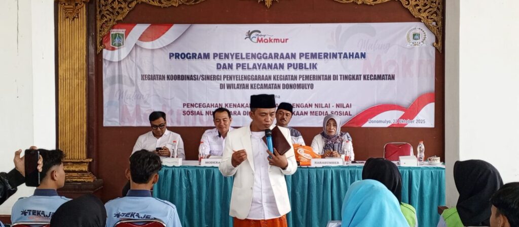 Malang Krisnanewstv.com – Dalam upaya mencegah kenakalan remaja di era keterbukaan media sosial, Pemerintah Kecamatan Donomulyo bersinergi dengan DPRD Kabupaten Malang menggelar kegiatan bertema “Pencegahan Kenakalan Remaja dengan Nilai-Nilai Nusantara di Era Keterbukaan Media Sosial”.