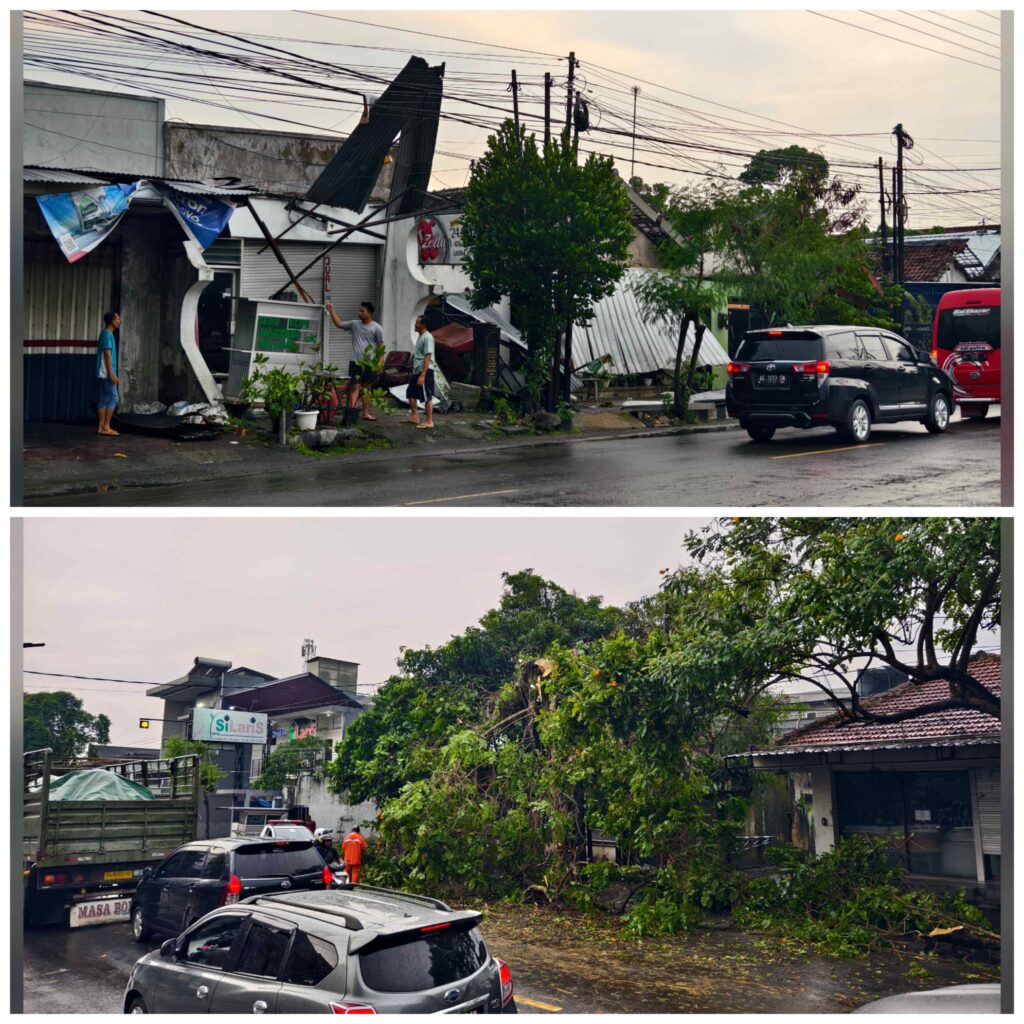 Salah satu dampak paling terasa terjadi di Jalan Urip Sumoharjo, tepatnya di pertigaan Jetis Ngronggo. Pohon tumbang di lokasi tersebut sempat menutup sebagian badan jalan dan menyebabkan kemacetan selama beberapa menit.