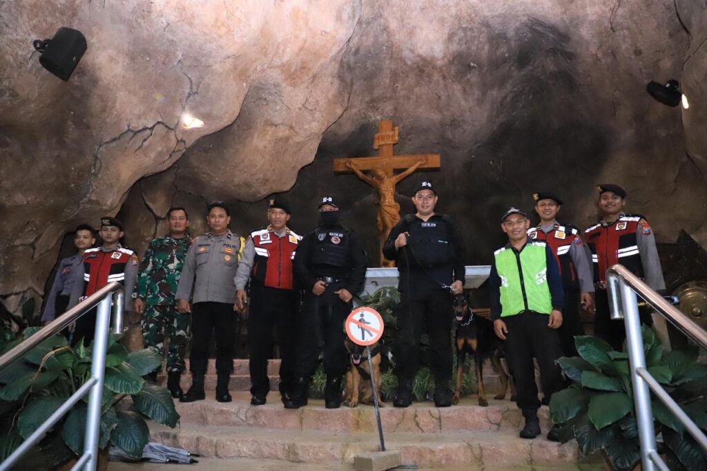 Dalam kegiatan tersebut, petugas melakukan pemeriksaan menyeluruh menggunakan alat metal detector serta melibatkan Unit K9 untuk memastikan tidak terdapat benda berbahaya atau mencurigakan di area gereja. Selain itu, koordinasi juga dilakukan dengan Bhabinkamtibmas dan pengurus gereja guna memperkuat pengamanan.