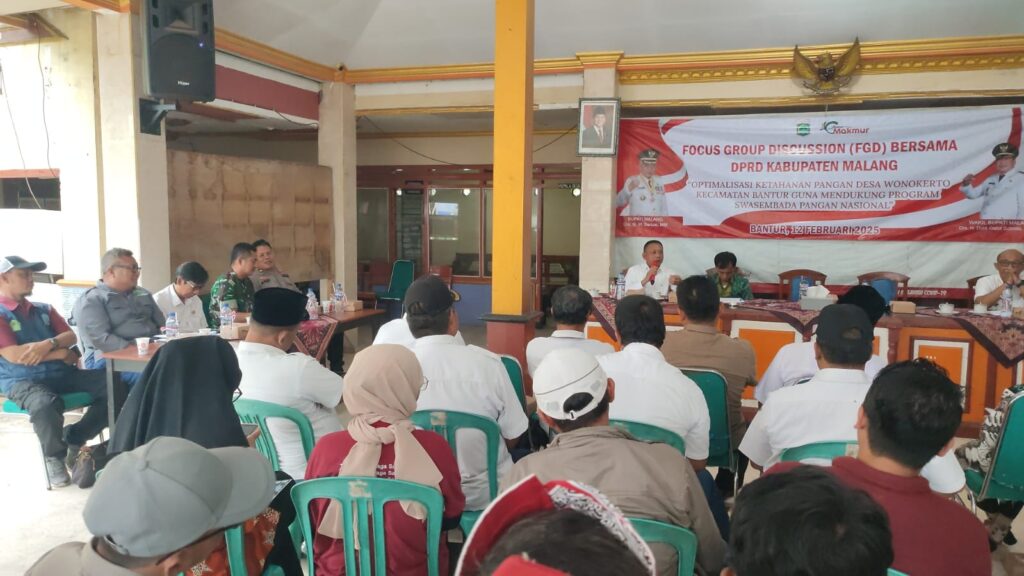 Krisnanewstv com//Malang,Acara FGD (Forum Group Disccusion) bersama DPRD Malang Terkait Potensi ketahanan desa kali ini dilaksanakan pada hari Rabu (12/02/2025) Pukul 09.00 WIB sampai selesai bertempat di Pendopo desa Wonokerto kecamatan Bantur Kabupaten Malang dengan mengambil tema “Optimalisasi Potensi Ketahanan Pangan Desa Wonokerto Kecamatan Bantur Guna Mendukung Program Swasembada Pangan Nasional”,