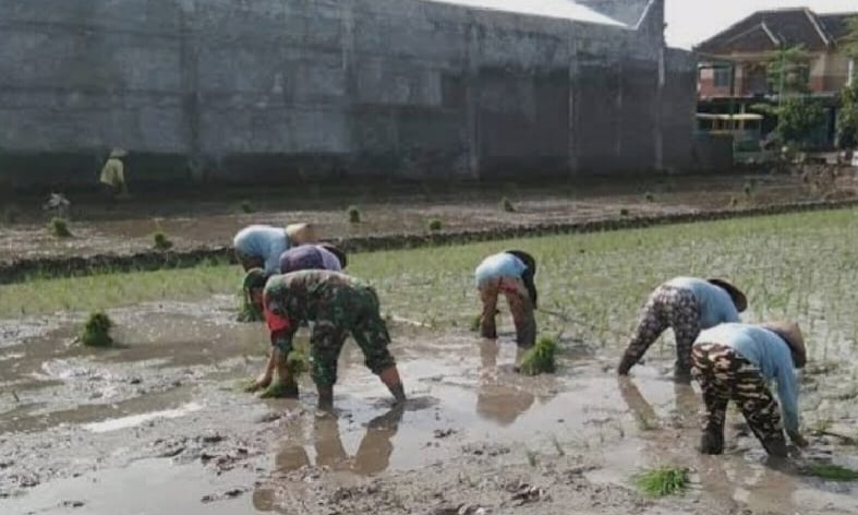 Upaya menjaga ketahanan pangan di Kabupaten Malang terus digalakkan melalui sinergi antara aparat TNI dan masyarakat petani. Sertu Sutrisno, Babinsa Koramil 0818/08 Wagir, menunjukkan komitmennya dengan terjun langsung membantu petani Desa Sitirejo, Kecamatan Wagir, dalam kegiatan tanam padi. Aksi nyata ini tidak hanya mempercepat proses tanam, tetapi juga mempererat hubungan emosional antara Babinsa dan warga. (08/2025)