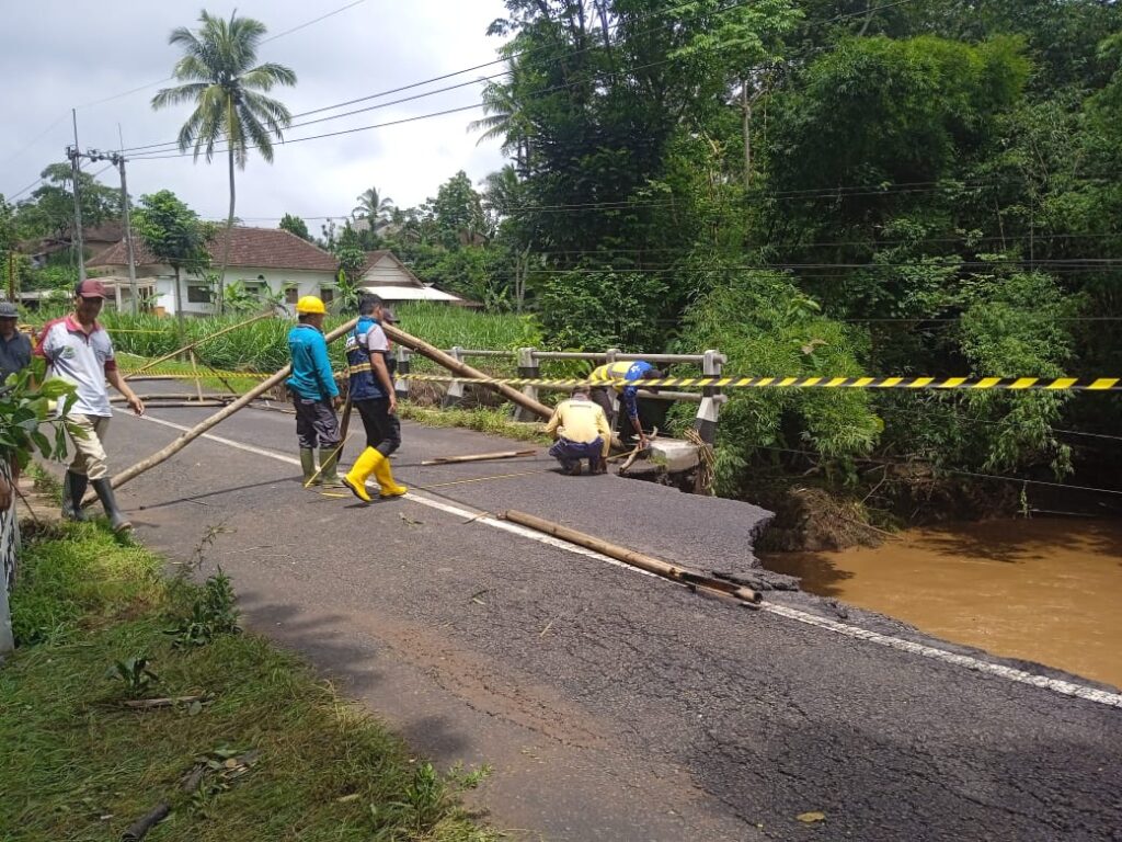 Bandang karena hujan terus menerus dan material sampah berupa batu ,pasir dan kayu ,bambu akibatkan jembatan jalan raya Wotgalih dan Balong ambrol dan bila di lewati kendaraan roda 4 sangat berbahaya pada hari Kamis(29/11/2024) di Jalan Raya perbatasan Wotgalih – Balong desa Rejoyoso Kecamatan Bantur Kabupaten Malang Jawa Timur.