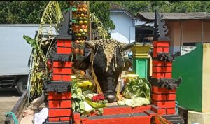 Sementara itu, Kanjeng Pangeran Aryo Adipati H. Sucipto Wironagoro menyampaikan bahwa prosesi larungan juga diiringi dengan penyembelihan hewan ternak berupa kerbau sebagai simbol pengorbanan dan kebersamaan.