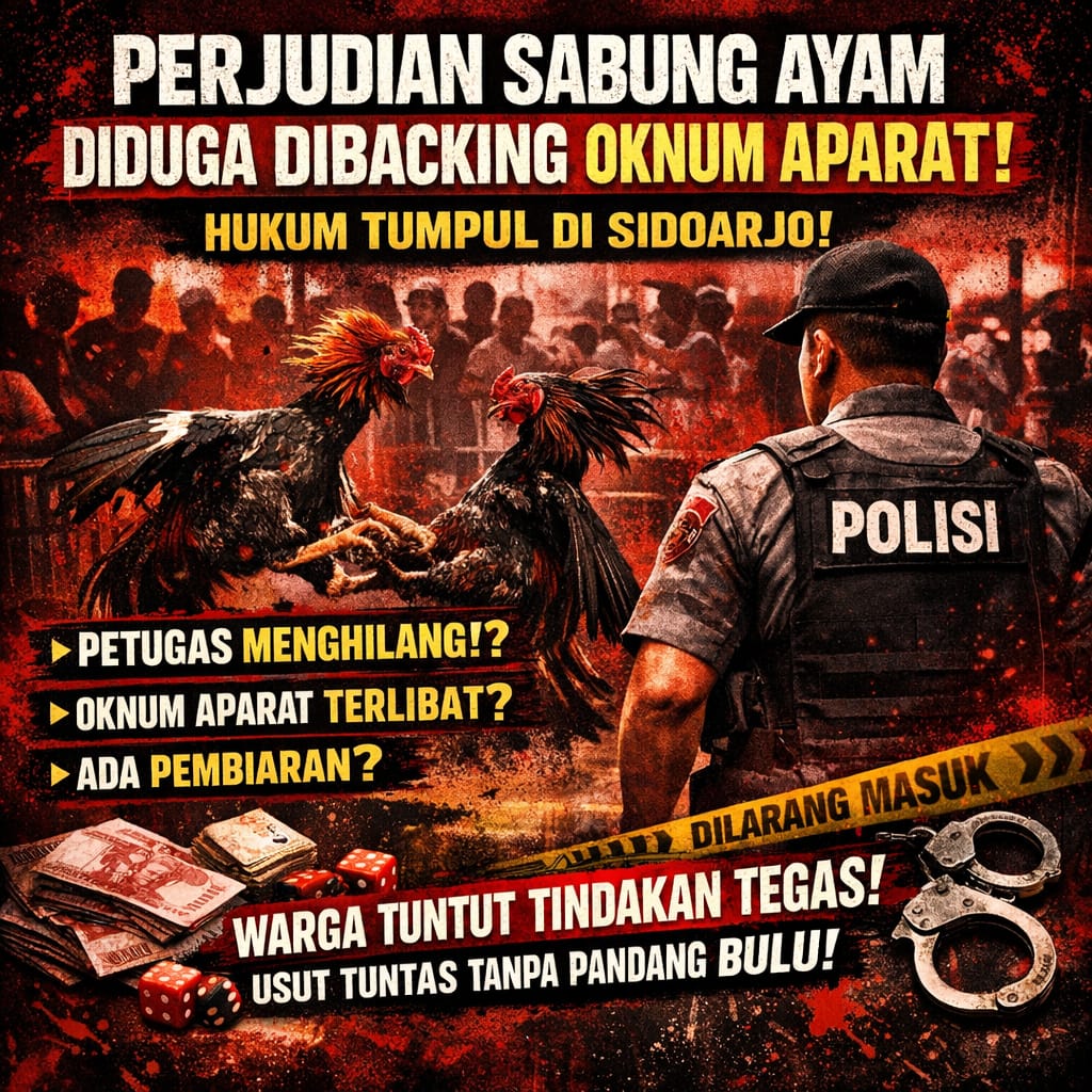 PERJUDIAN SABUNG AYAM DIDUGA DIBACKING OKNUM APARAT: HUKUM SEAKAN TUMPUL DI SIDOARJO