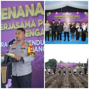 KEDIRI – Polres Kediri terus menunjukkan komitmennya dalam mendukung program ketahanan pangan nasional. Hal tersebut diwujudkan melalui kegiatan tanam raya 3.000 bibit uwi ungu di lahan seluas sekitar 3.850 meter persegi yang berada di belakang Mapolsek Wates, Kabupaten Kediri, Rabu (4/3/2026) sore.