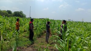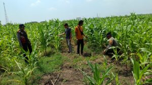 Kanit Binmas Polsek Krembung Aiptu Adin menjelaskan bahwa kegiatan pengecekan dilakukan secara berkala untuk memastikan tanaman jagung tumbuh optimal.