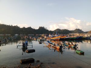 Pemandangan ratusan perahu berwarna warni yang padat di sepanjang garis pantai, berpadu dengan aktivitas nelayan, merupakan ciri khas ikonik dari Pantai Sendang biru dan ini merupakan suatu daya tarik bagi para wisatawan.(Suryadi)