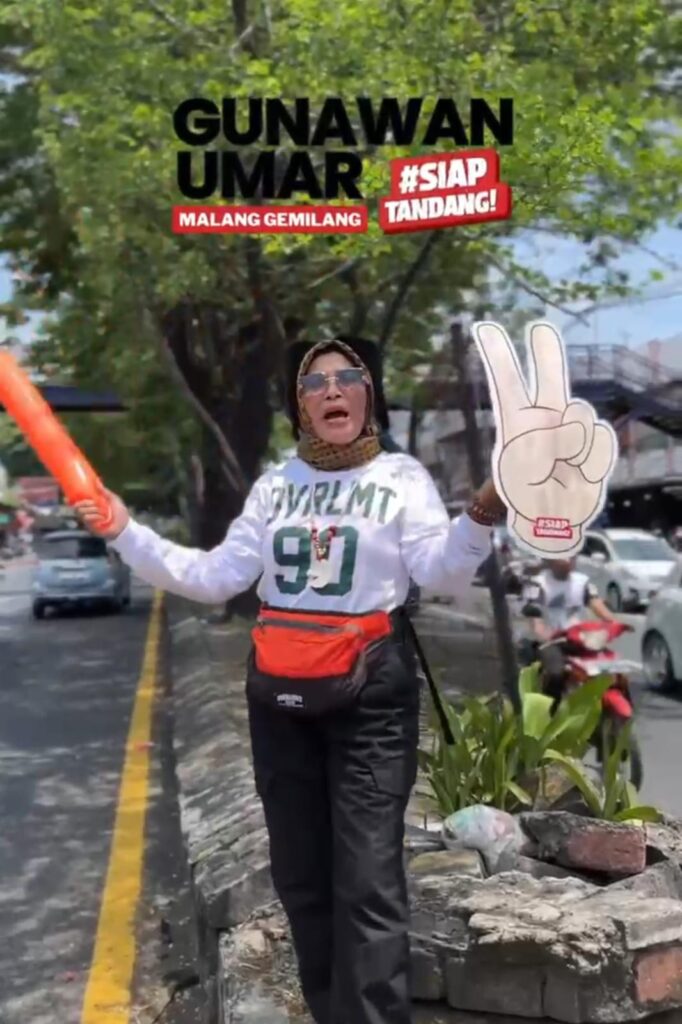 Kepada semua masyarakat yang melewati di kegiatan kami pada hari ini Minggu (17/11/2024) di depan Pasar Singosari kami Bu Asih Korcam Singosari sangat berbahagia dengan adanya banyaknya dukungan Abah Gun untuk menjadi Bupati Malang menang ,menang ,” ungkapnya dengan suara penuh haru.